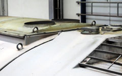 Nicht nur zugunsten des besseren Schallaustritts, sondern auch, um die große graue Dachfläche mit feinen Details anzureichern, wurde dieses neue Bauteil geschaffen. Die Lüfteröffnungen werden vorsichtig aufgesägt - tatsächlich geht es am besten mit einer Laubsäge - und die neuen Ätzteile in die gewünschte Neigung gebracht und von unten angeklebt. Die Lamellen können ebenso wie bei der V 100 fast rechtwinklig abstehen, aber auch den geschlossenen Zustand wiedergeben, wobei sie sich dann wie im Original wie Dachziegel zu überlappen scheinen.