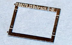 Teilesatz mit zwei geätzten Fabrikschildern, die lackiert, geschliffen und einbaufertig geliefert werden. Weil die Fabriknummern im winzigen Ätzteil nicht mehr lesbar wären, ist das Fabrikschild universell verwendbar.