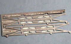 Zu große Materialstärke bei Geländern und Streben - bei Industriemodellen? Eine Schwäche, die man verstehen muß: wäre es feiner, würde das Teil leichter verbiegen oder brechen. Abhilfe bieten nur Teile aus Metall. In der Großserie ist es eine aufsehenerregende Sensation, wenn Ätzteile verbaut werden; in der Kleinserie ist das selbstverständlich - und schon seit Jahren! Bei diversen Modellen (BTms 55, Rommenhöller-Kohlensäurewagen) ist sichtbar, wie fein geätzte Bremserbühnen sind: ein derartiges Teil gibt es bald zum Nachrüsten diverser Industriemodelle. Ein separates Ätzteil (0,1mm stark) für den Gitterrost ermöglicht separate Lackierung - und Durchblick nach unten.