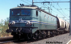 Schnelle Fahrzeuge nach kräftigen Winden zu benennen, war wohl kein Einfall eines Autoherstellers, sondern eher der SNCF. Bis 1981 war der „Mistral“ der europaweit schnellste fahrplanmäßige Zug. Die „141 R“, im Modell neu aus der Lokfabrik Märklin, war anfangs die reguläre Zuglok; 1961 wurde sie nach Elektrifizierung der Strecke von der BB 9200 ersetzt. Die „Mistral-Dampfer“ - auch die in Mulhouse ausgestellte 241 P- trugen ein äußerst markantes Schild an der Rauchkammertür, das für HO-Maschinen aus Neusilber geätzt wird. Um am edlen Modell nicht mit Sekundenkleber zu arbeiten, ermöglicht die Größe bzw. Breite des Schildes ein Ankleben mit einem Stück Doppeltesa. Es ist aber auch für Elloks verwendbar; die BB 9200 sowie CC 7100 und CC 6500 waren auf der Relation Paris – Marseille – Nizza auch damit ausgestattet.