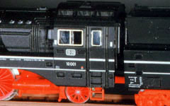 Auch bei der BR 24 gibt es eine Reihe markanter Detailunterschiede. So sind die Frontschürzen unterschiedlich stark geneigt, sodaß sich schon damit unterschiedliche Windleitbleche ergeben. Um minimalinvasiv Variationen in den Fahrzeugpark zu bringen, begnügen wir uns mit zwei neuen Windleitblechen, die genau auf das Fleischmann-Modell abgestimmt sind – und mit hauchdünnen Strukturen glänzen. Das Windleitblech 98024.02 endet an der Vorderkante der Pufferbohle.