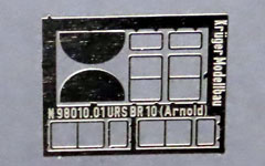 Mit diesem kleinen Umbausatz kann das schöne N-Modell der BR 10 weiter verfeinert werden: mit exakt passenden Blechen kann die Aussparung in der Frontschürze geschlossen werden, ohne den Seitenausschlag der Vorlaufradsätze zu beeinträchtigen; fein geätzte Neusilber-Fensterrahmen verschönern das Führerhaus.