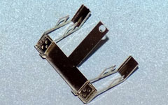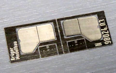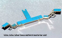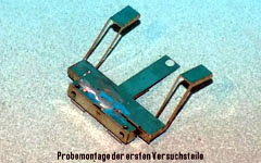 Da, wie berichtet wurde, die Leitern am Kohlenkasten der Fleischmann-BR 62 gern abbrechen, wurden filigrane, geätzte Leitern neu entwickelt. In eine U-förmig gefaltete Konstruktion (Wandhalter und Holme) wird eine feine Sprossenebene eingeschoben und verlötet. Und dieser Umbausatz wird vier Leitern enthalten: eine zum Ausprobieren, zwei zum Anbauen, und die vierte als Reserve.