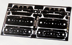 Teilesatz mit zwei geätzten Fabrikschildern, die lackiert, geschliffen und einbaufertig geliefert werden. Weil die Fabriknummern im winzigen Ätzteil nicht mehr lesbar wären, ist das Fabrikschild universell verwendbar.