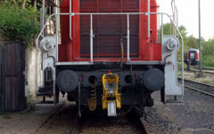 Viele Dieselloks haben an den Vorbauten oder Führerhäusern Tritte mit aufklappbarer Trittfläche. Im Maßstab 1: 45 lassen sich mit solchen Funktionsteilen herrliche Szenen nachbilden.