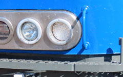 Der schon seit Jahren im Programm befindliche Teilesatz wurde überarbeitet und weiterentwickelt: erst auf den zweiten Blick erkennt man, daß die über den Puffern befindlichen Tritte links und rechts unterschiedlich montiert sind: von vorn betrachtet, sitzt der Tritt auf der rechten Seite direkt am Gehäuseblech, der Tritt auf der linken Seite aber auf einer Konsole. Hintergrund ist die Nachrüstung vieler Lokomotiven mit der UIC-Steckdose, die für den Lokführer trotz unvorteilhafter Position gefahrlos erreichbar sein muß. Damit der Lokführer nach dem An/Abstecken den Tritt wieder erreichen kann, der ja teilweise vom Umlaufgitter verdeckt ist, hat man den Tritt nach vorn verlängert.