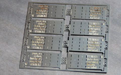 Die Zusammenfassung in einem Ätzrahmen bringt nicht nur eine Materialersparnis (Ätzrahmen) mit sich.